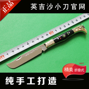 新疆刀 折叠式 纯手工英吉沙小刀正品 工艺品 黄铜黒木刀柄